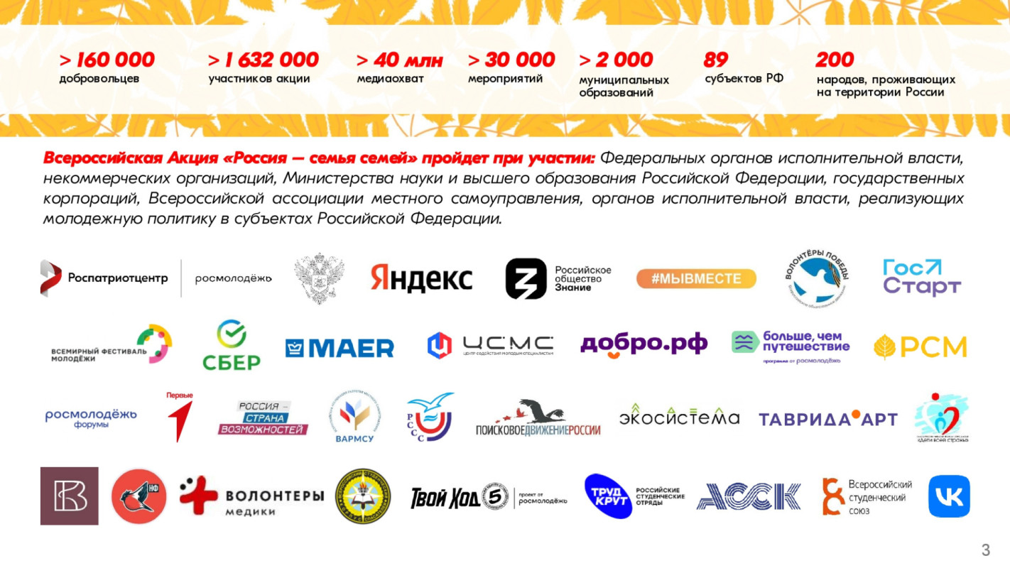 Все желающие могут присоединиться на платформе Добро.РФ и поделиться своими добрыми делами с хештегом #РоссияСемьяСемей.