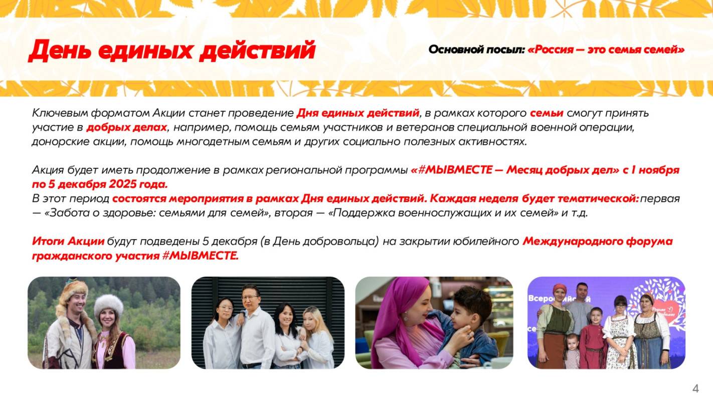 В рамках Дня единых действий семьи по всей стране объединятся, чтобы сделать добрые дела: