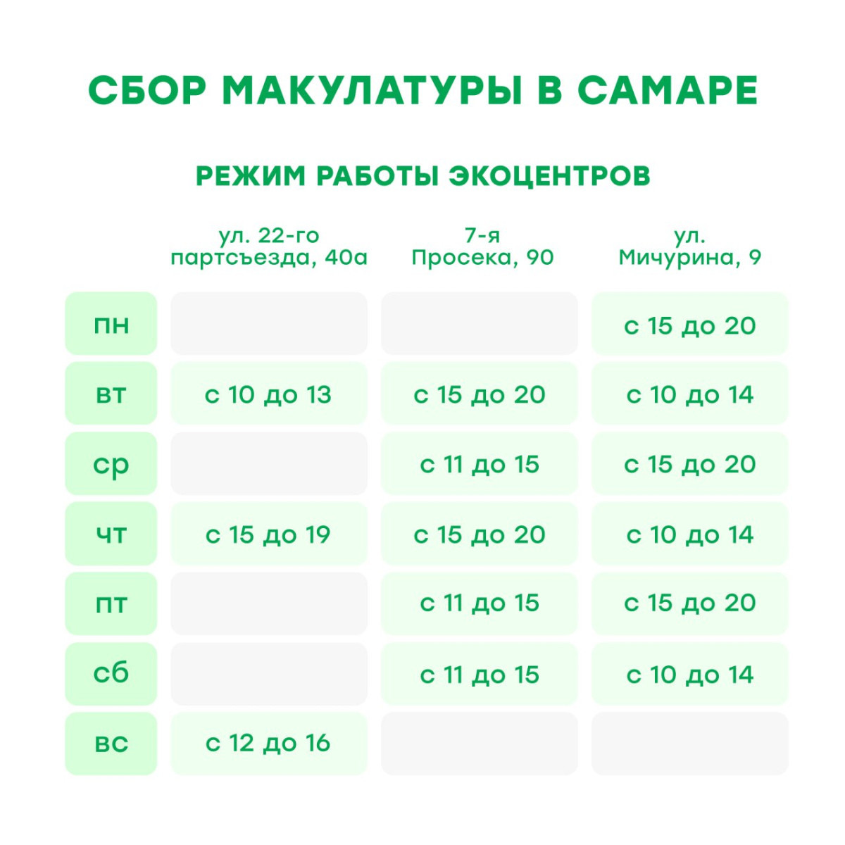 В Самаре сбор макулатуры осуществляется при поддержке волонтёрского проекта «Вторсырьё на благо». В городе работают три экоцентра: