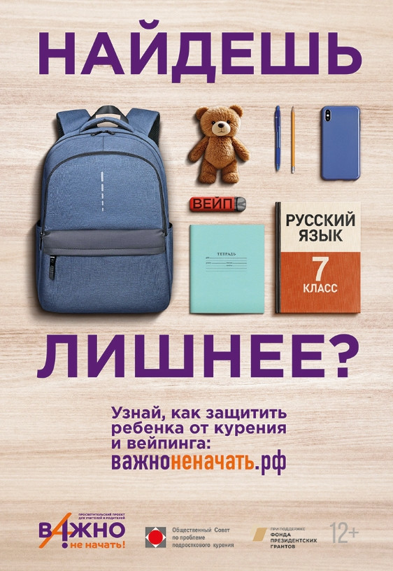 Просветительский проект «Важно не начать!» предусматривает внедрение в школы региона цикла интерактивных профилактических занятий для 6–11 классов, продвижение современного обучающего контента для педагогов и родителей, а также кампанию социальной рекламы, мотивирующую родителей формировать у детей негативное отношение к курению и вейпингу. Для педагогов будут организованы обучающие семинары, для родительской аудитории – тематический областной вебинар.