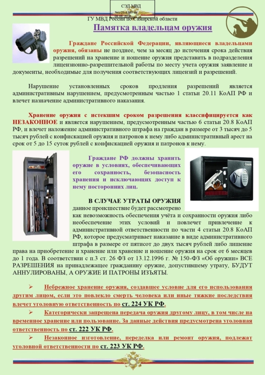 По всем вопросам сдачи незаконно хранящегося оружия обращаться в Главное Управления МВД России по Самарской области по телефону 8 (846) 921-22-22, 8 (846) 921-22-23, а также в ЦЛРР Управления Росгвардии по Самарской области 8 (846) 339-48-81, 8 (846) 339-48-52.